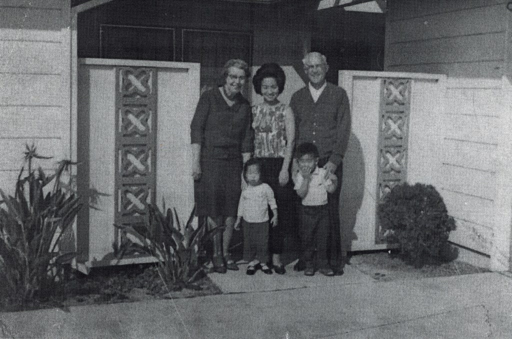 After Lily’s departure from the Philips family, she stayed with the Martins for two months. Mrs. Martin was heavily involved with volunteer work with Catholic charities. Her dedication to service was inspiring for Lily. Mrs. Martin would drive Lily around town to different social service agencies so that she could learn first-hand how services were provided. Mrs. Martin left a significant impression upon Lily’s experience in America. When it came time for Lily to leave, she gave Mrs. Martin a jade necklace that her own mother had given to her. Throughout the years, Lily and Mrs. Martin kept in contact and continued to develop a long-distance friendship. Forty years later, Lily and Mrs. Martin reunited for the first time. They reconnected at Lily’s first home in Huntington Beach, where Mr. and Mrs. Martin were able to meet her family.